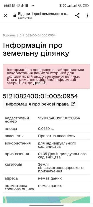 | Земельна ділянка: |