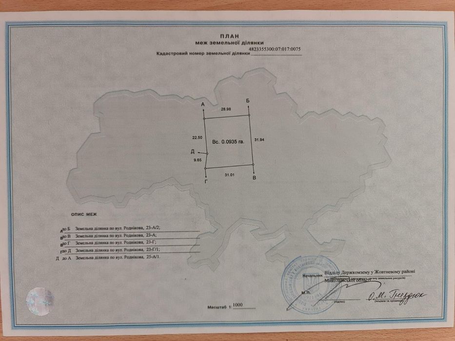 | Земельна ділянка: |