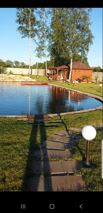 БЕЗ ВІДСОТКІВ ! Продам будинок з великою територією, озером та банею.; Продам будинок у с. Здорівка, 25 км від Києва. Будинок площею 70 м². Будинок з ремонтом, побутовою технікою, та меблями. Ділянка площею 25 соток + 2 сотки, з озеленінням , є котельня, автоматичний полив, скважина, колодязь. На території є озеро 300 м², водоспад та дерев'яна баня площею 35 м ². (це повноцінний будинок), та багато іншого. Зв'язок по: viber, WhatsApp, Telegram. Без комісії.