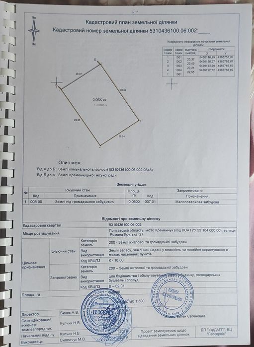 | Земельна ділянка: |