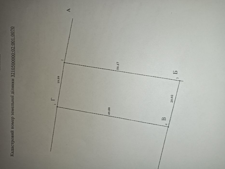 Земельна ділянка 20×50,правільної форми.