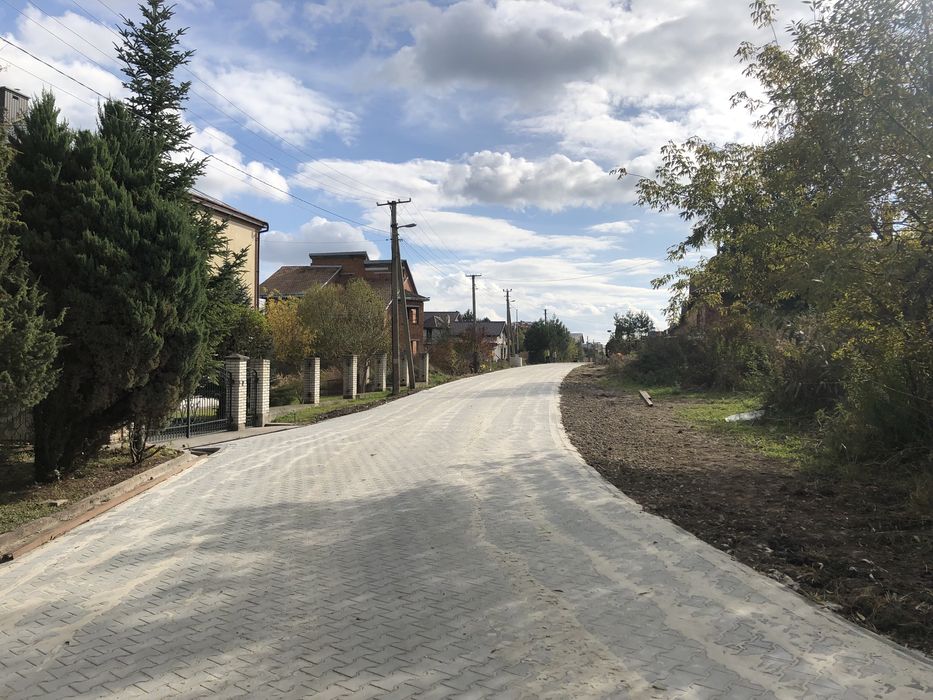 10 сот., присутні всі комунікації, електромережа, газ, центральне водопостачання, має зручний підʼїзд по бруківці, розвинута інфраструктура, хороший сухий ґрунт, знаходиться в екологічно чистому та тихому районі, вихід з ділянки до річки.