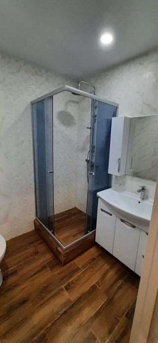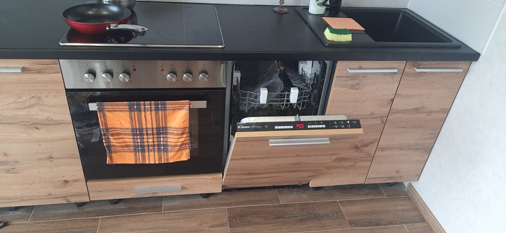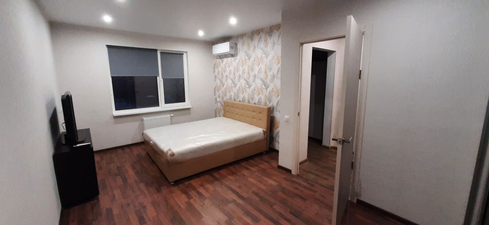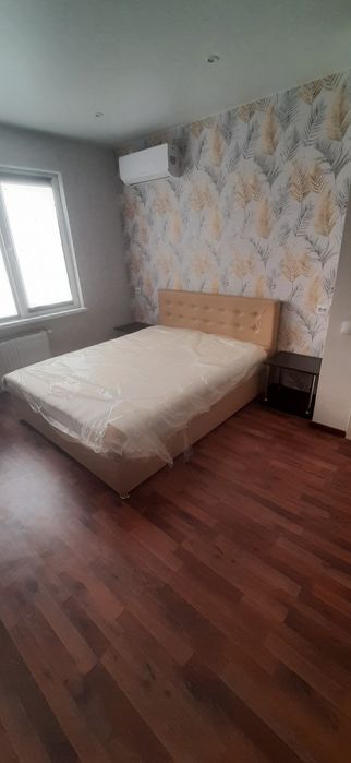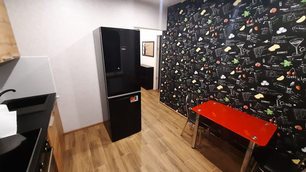 Полноценная правильной планировки 1 комнатная квартира, новострой всё новое приятно зайти в парадное, охраняемая територия. Парковка перед домом всегда есть места, 2й этаж удобно спускаться и подыматься пешком. 2 лифта грузовых. Кровать ортопидическая большая широкая 2х спальная в пленке ещё. Фото соотвествуют на 100%. Квартира полностью обставлена всем: встроенная техника поверхность, духовка электро печет супер, вытяжка, холодильник 2х камерный с ноуфрост, кондиционер расчитан на всю квартиру на охлаждение и обогревом, телевизор плазма, шкаф встроенный, писменный стол встроенный метровый как отдельная рабочая зона так же можно поработать на кухне или балконе выведены розетки, свет, стиральная машинка, сушка для белья, бойлер, посудомойка, свет с зональностью затемнения и рабочих зон, большой балкон затонирован снизу, можно спокойно посидеть попить кофе. Двери с двумя замками.