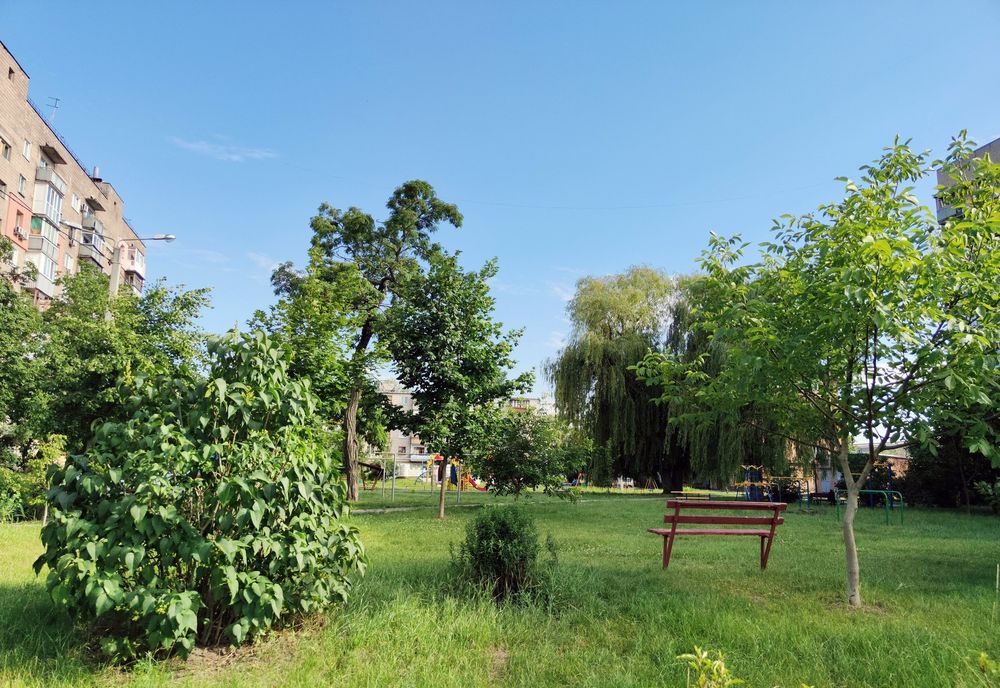 На подвір'ї поміняли весь асфальт. Є спорт майданчик з турніками, баскетбольне поле та поле для дитячого футболу. За 300 метрів ліс, і річка Лопань, за 500м піщаний пляж. Також у пішій доступності Арізона або вулиця Клочківська.