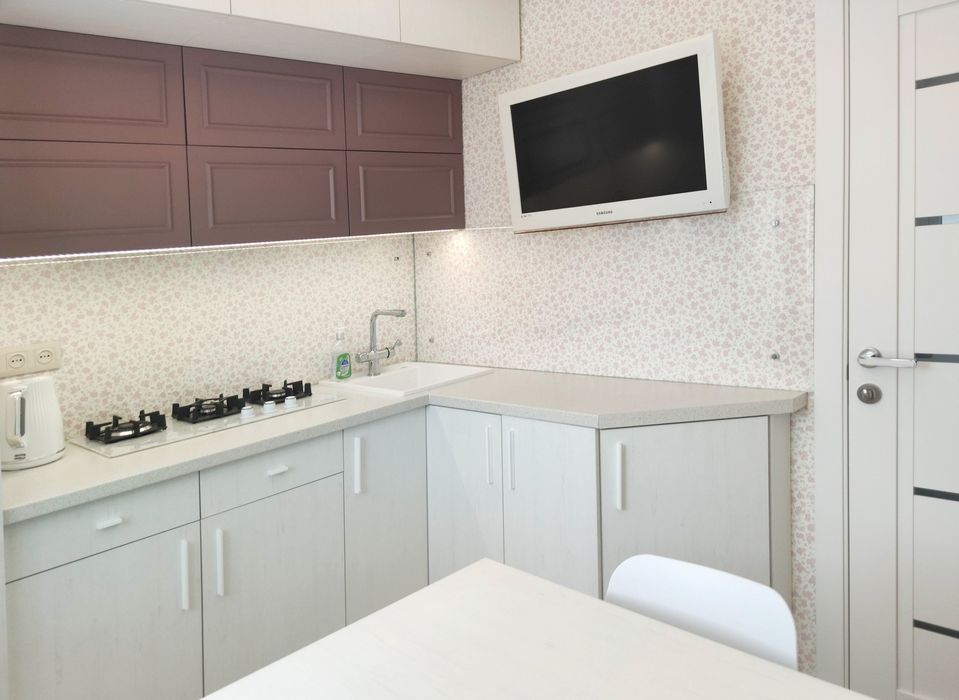 У ціну включено все, що на фото. Всі меблі, два телевізори, диван, інверторний кондиціонер, бойлер, холодильник, пральна машинка, мікрохвильова піч з конвекцією, варильна поверхня, витяжка і навіть чайник!