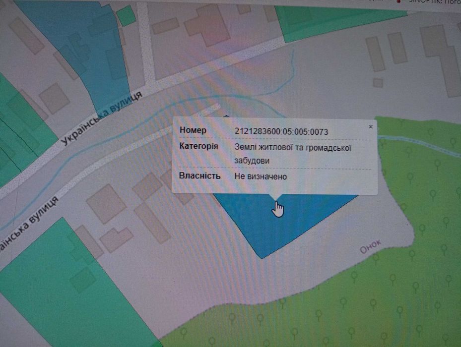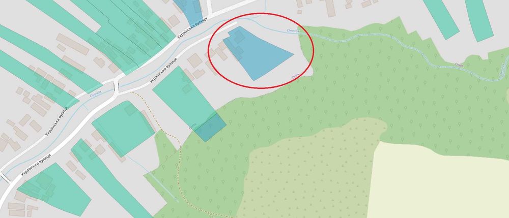 Приватна земельна ділянка с. Онок, 23 сотини; Продам земельну ділянку в с. Онок, Українська 178, з будинком
