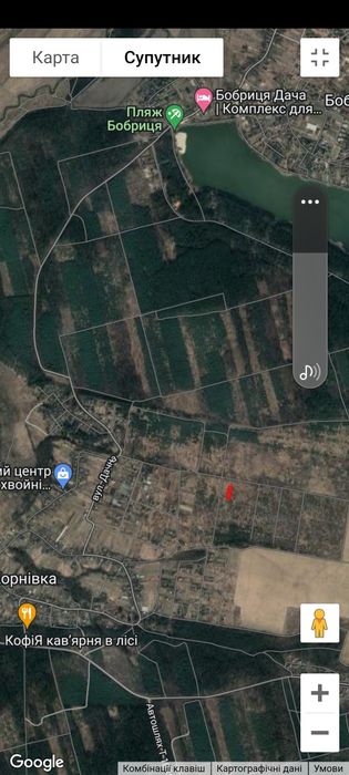 Поруч всі необхідні комунікації, ліс , дачний кооператив , котеджне містечко , озеро з пляжем , до найближчого міста 15 км .