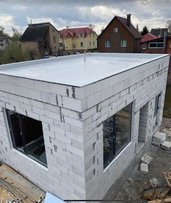 Одноэтажный Дом 200 м2 с выходом на воду, стены Газоблок 500мм + утеплитель 50мм + акриловая штукатурка. Алюминиевые окна и двери ALUMIL, плоская крыша 300мм вата Beltep + ПВХ-мембрана Protan. Высота потолков 3,5 метра жилая зона, 4,5 метра гостиная. Сделана электрика, сантехника, отопление(водяной тёплый пол), магистрали кондиционеров.
