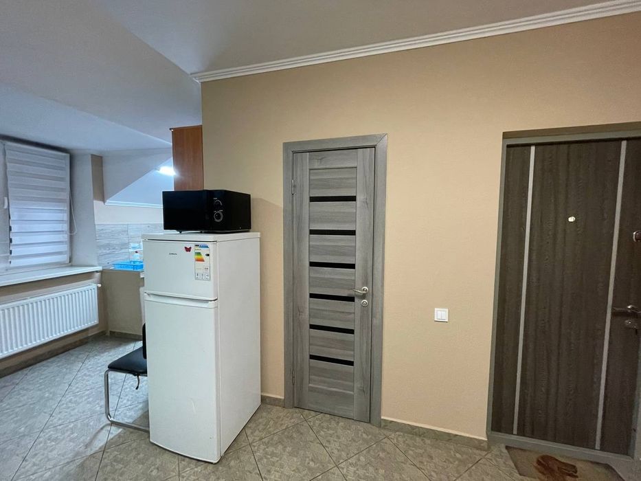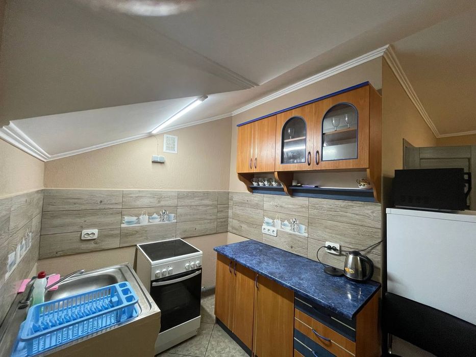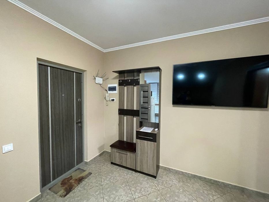 В квартирі є необхідні меблі (сучасні шафи в коридорі та спальні, три розкладних дивани, двоспальне ліжко, стіл, стільці, кухонні меблі) та побутова техніка (пральна машина, електрична плита з духовкою, холодильник, микрохвильова піч, електрочайник, телевізор, Wi-Fi-роутер), також є весь необхідний посуд, Все це за Вашим бажанням можемо залишити в квартирі.
