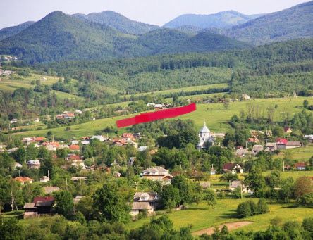 Земля в Карпатах; Продам земельну ділянку з чудовим краєвидом неподалік лісу та річки. Місцезнаходження ділянки на фото виділено червоною лінією. Ділянка має 2 кадастрові номери 2623688001:01:002:0568*******88001:01:002:0572