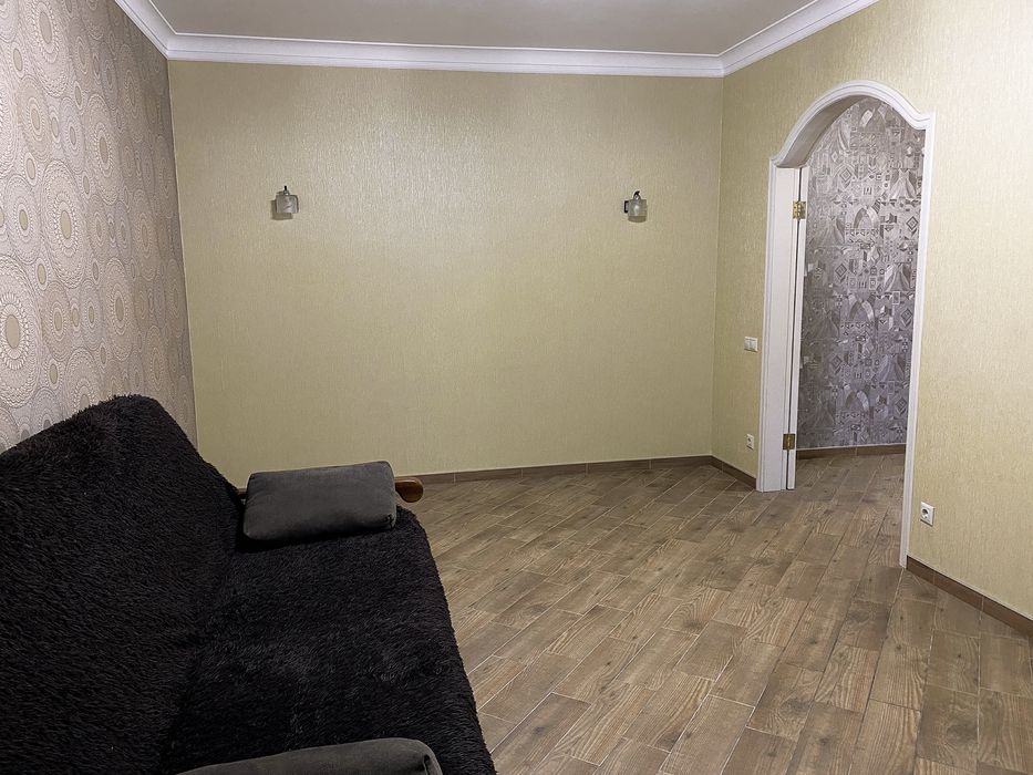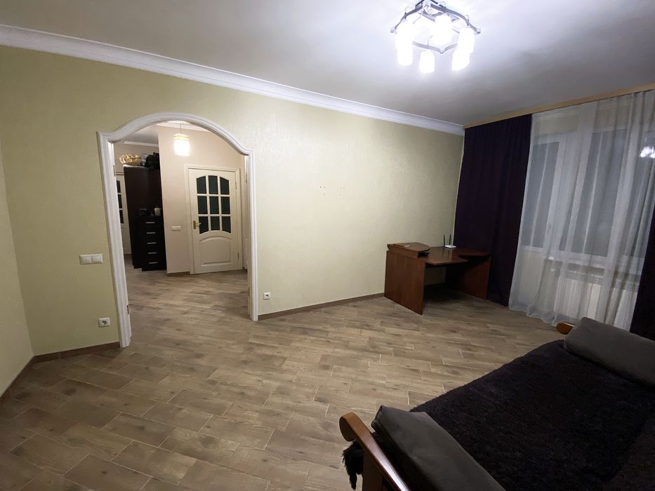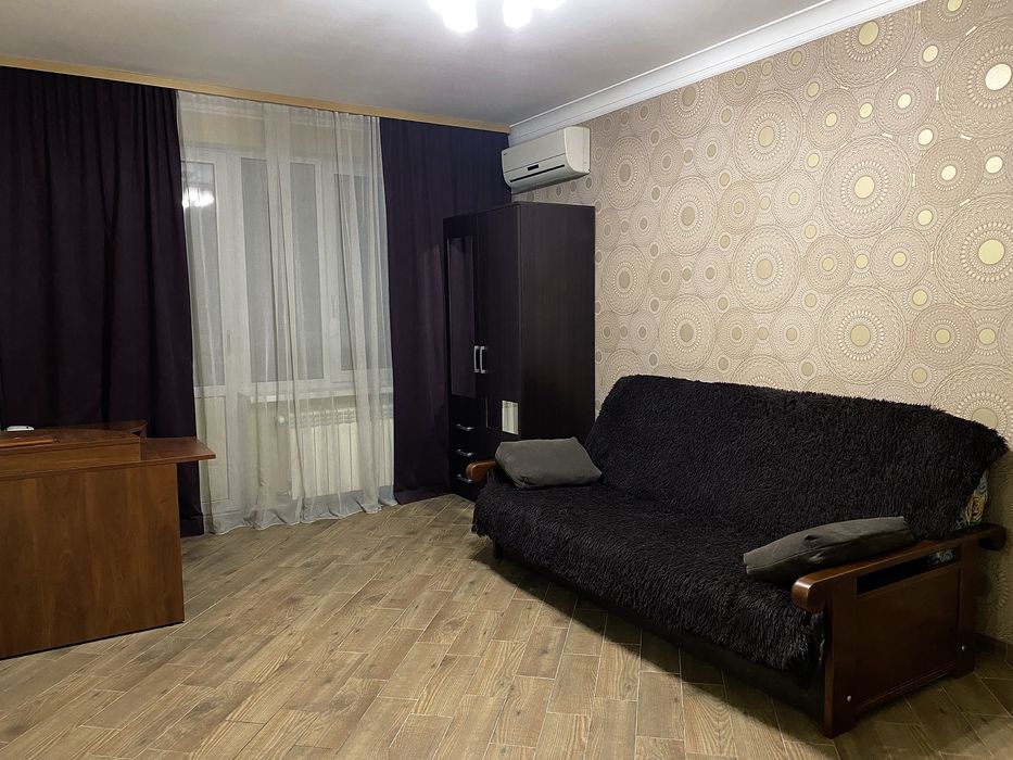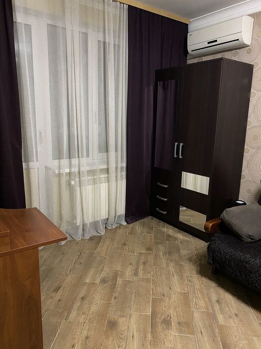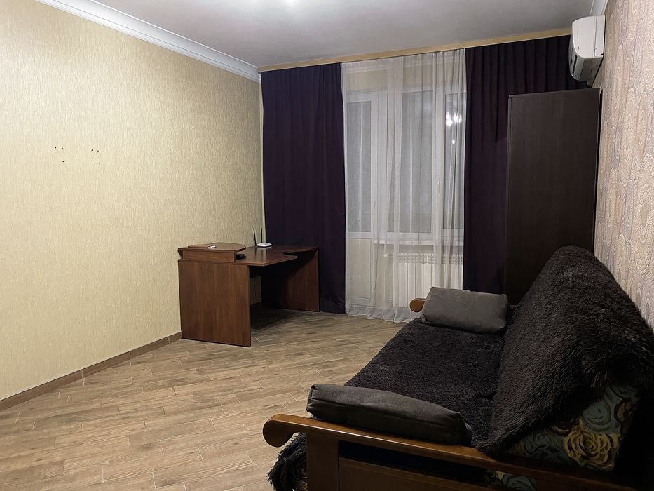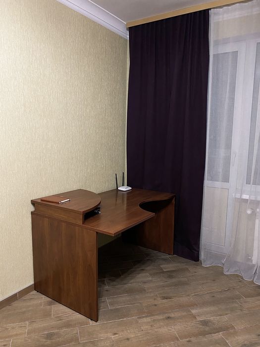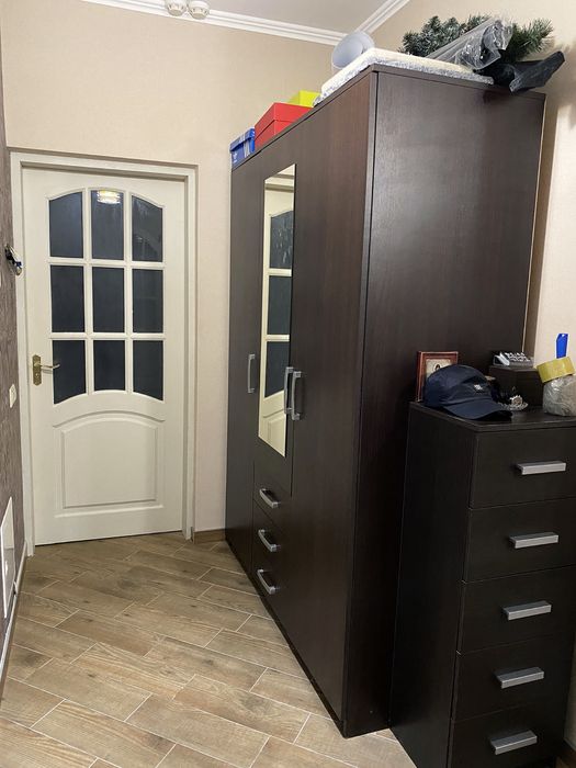 Меблі: Розкладний диван, компʼютерний стіл, дві місткі шафи для гардероба.