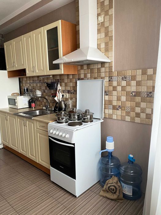 Техніка: Кондиціонер, телевізор, пральна машина, мікрохвильова піч, електроплита.