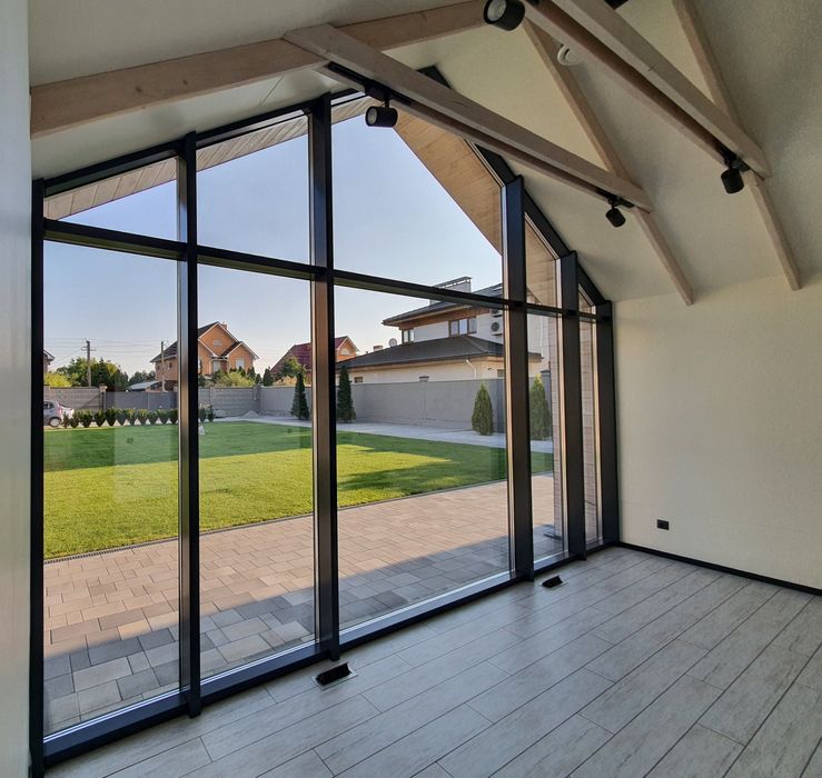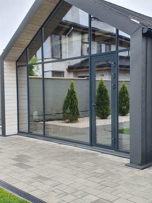 -фасадное остекление теплым алюминием, со стеклопакетами толщиной 50 мм;