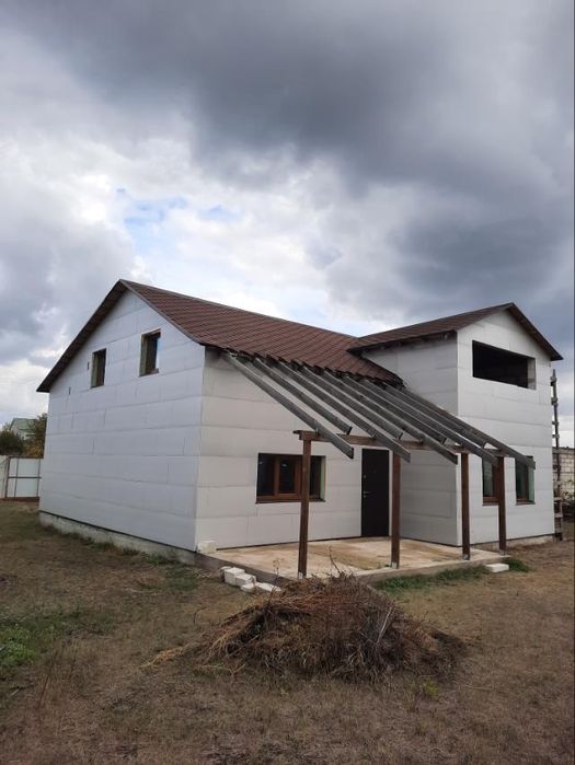 Продаётся 2 эт.дом, 150 м², построен по индивидуальному дизайнерскому проекту. Фундамент ж/б монолитный ростверк на сваях. Стены арболит. Крыша битумная черепица. На первом этаже залит бетонный пол. Второй этаж полы из плит Osb по деревянным лагам. В доме есть два входа, двери установлены бронированные утеплённые . Окна металлопластиковые WDS 5-камерный профиль и 2х камерный стеклопакет с энергосбережением и защитой от ультрафиолета. Скважина 11 м. Установлен септик Барс Эко. Выполнена разводка водоснабжения и канализации по дому. Подключено электричество 380 Вт. (20 кВт) Сделана разводка электричества по дому. На первом этаже расположен гостевой санузел, большая спальня, кухня, столовая, гостинная. На втором этаже 3 отдельных спальни, большой санузел и крытая терраса. Территория участка отделена бетонным двухметровым забором. Установлены откатные ворота, калитка. Участок ровный, ухоженный, есть молодые деревья.