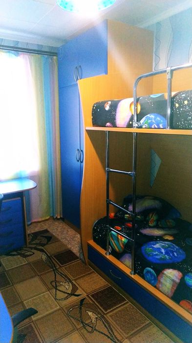 Светлая, теплая. Окна и лоджия - металлопласт; установлены счетчики на воду, газ, электричество. Газовая колонка на горячую воду (в наличии остался новый бойлер). Санузел совмещён,трубы на разводке воды поменяны на металлопласт. С лоджии заведена рабочая спутниковая антенна с кабелем без тюнера. Заведены интернет кабеля Дикий Сад, Киевстар.