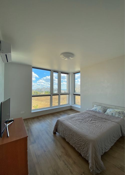 Продам Смарт Квартиру в новом доме; Чистая светлая 4х местная Смарт квартира, в новом красивом доме с видом на море, ЖК Kokos Avenue. Теплый дом построен из хороших материалов, 3х камерные стеклопакеты - обеспечивают отличную шумоизоляцию, установлены темные рулонные шторы, для удобства и уюта квартира поделена перестенком, что дает зонирование на 2 отдельные просторные части. Присутствует кровать и раскладной диван, напольное покрытие ламинат, на стенах фактурная штукатурка, потолок натяжной.