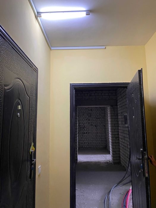 Новий, вже зданий та підключений до всіх комунікацій будинок з силікатної цегли. Можна робити ремонт та заселятися. Cусіди вже проживають. Ліфт працює, вихід на сходи через загальну лоджію.