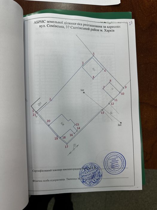 Салтівський; Продам участок в черте города Харьков; Продам участок в городе Харьков, улица Сомовская, 37. Есть технический паспорт и кадастровый номер. На территории участка имеется дом в полуразрушенном состоянии. На руки хотим 30000$.