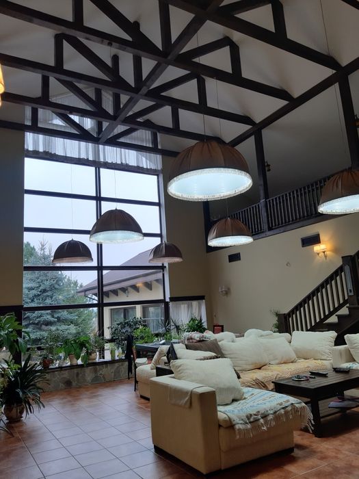 15сот, 350кв.м. дом+ 150кв.м. хоз.постройки бассеин летняя кухня, подвал и.т.д, 2эт, 3спальни меблированные с гардеробными, зал с камином 5сан.узлов, 2кухни со всей встроенной техникой, терасса.