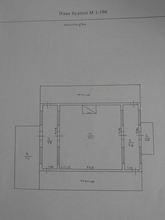 Два підсобні приміщення загальною площею 43,6 м2. Гараж цеглевий 27,4 м2. (треба перекрити рубероідом)