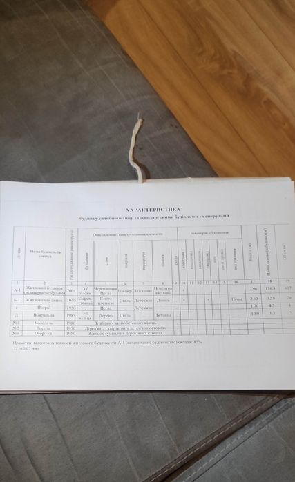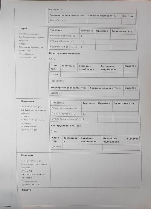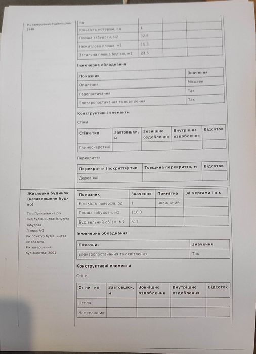 Друга забудова садибного типу (недобудова): цокольний поверх - гараж, перший поверх кімнати; стіни цегла, перекриття бетонне, підлога частково цемент, покрівля шифер, електроенергія по документах є, площа забудови 116.3 м2.