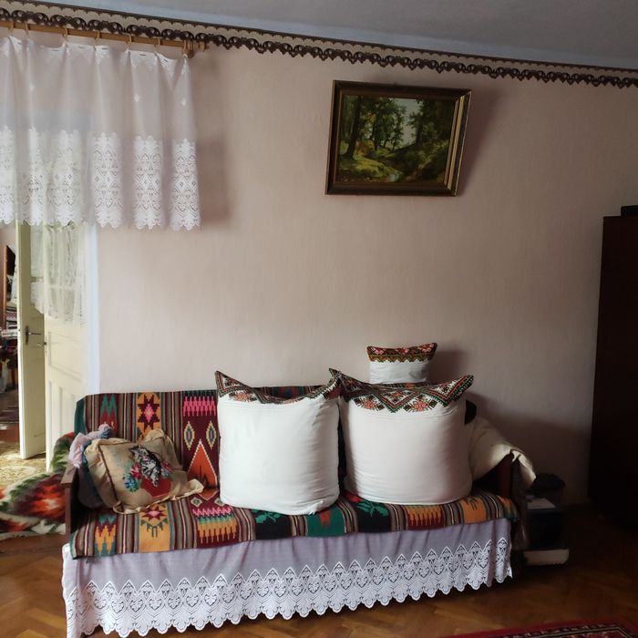 Продам чудовий будинок; Продається будинок в смт Мельниця-Подільська, жилий стан, 3 кімнати, коридор, прибудова на 2 кімнати, ванна і туалет в будинку (не до кінця зроблені), великий підвал. Є криниця, город, велике подвір"я засіяне травичкою. Поряд ліс, скали, річка Дністер - дуже мальовнича місцевість. Можливий торг в розумних межах.