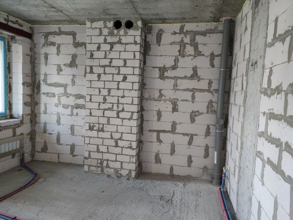 Дом построен по монолитно каркасной технологии,стены из газоблока и обложены дополнительно кирпичем.