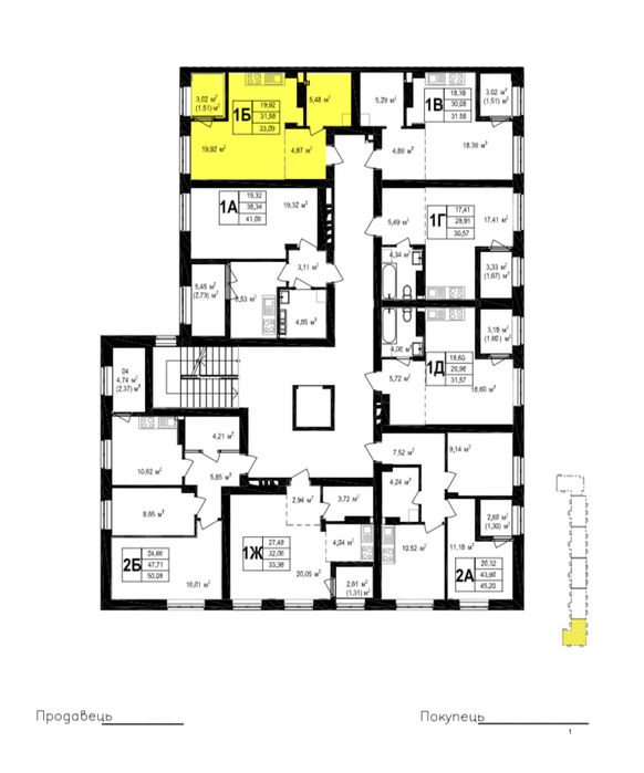 Загальна площа квартири: 33.09 м2. На етапі здачі квартири це open space, що дає можливість змоделювати планування під свої потреби та бажання.