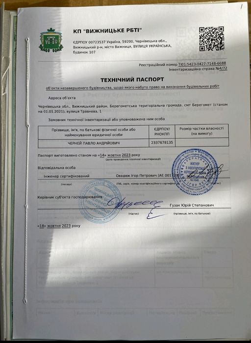 Продається Будинок; Продається будинок (незавершене будівництво, по документах 52%).В смт Берегомет,по вул.Травнева 1 . В самому центрі,Поруч магазини, садік, аптека, (500м до центральної дороги).Світло і газ поруч.Детальніше звертайтесь в приват.