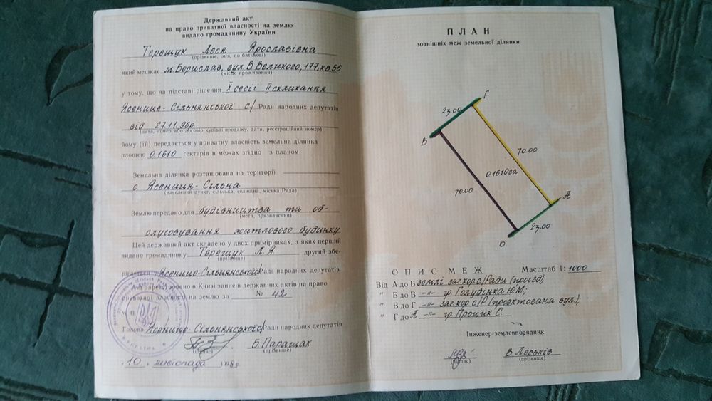| Земельна ділянка: |