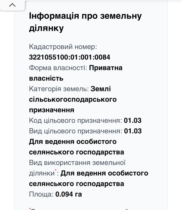 | Земельна ділянка: |