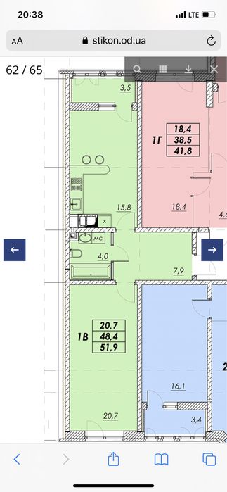 Продам 1к квартиру в новом комплексе на Молдаванке «Прохоровский квартал» от Стикона. Квартира расположена в секции 3.4 на 9 этаже.