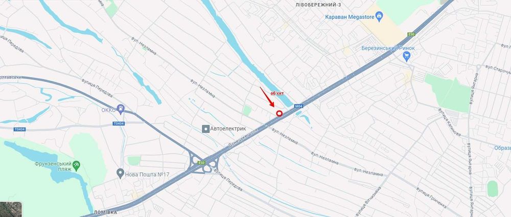 Індустріальний; Земельна ділянка Донецьке шосе 0,095га; Донецьке шосе. Червона лінія (перехрестя з вул. Грінченка)