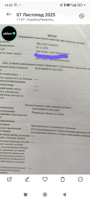 Земельна ділянка у м.РівнеЦільове призначення: 02.01 – для будівництва; Земельна ділянка в межах містаЦільове призначення: 02.01 – для будівництва та обслуговування житлового будинку, господарських будівель і споруд