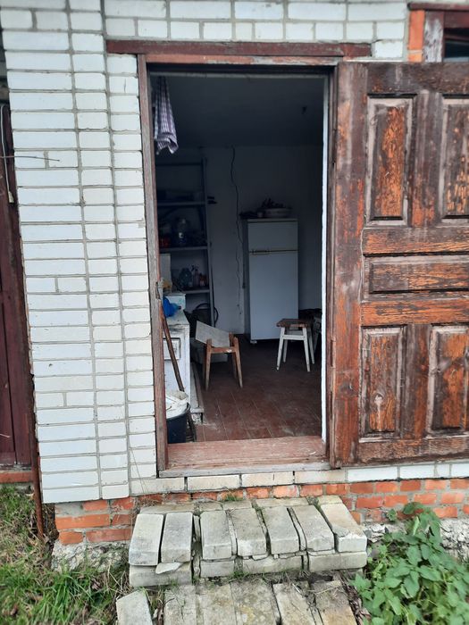Побудовано цокольний поверх. 90 м.кв. Погреб. Скважина. Металевий каркас теплиці 6х6. Туалет. Сад. Єлектрика підведена. Вихід газової труби на ділянці. На ділянці 4 б/у плити 6х1. Є літня кухня, але потребує ремонту.