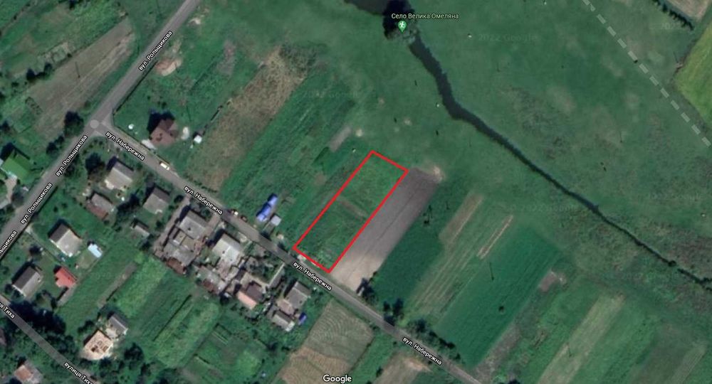 Продам земельну ділянку с. Велика Омеляна; Продам земельну ділянку в селі біля ставка та річки 20 соток
