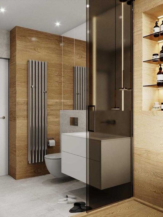 Підлоги і ванні кімнати облицьовані широкоформатним керамогранітом з Іспанії. Тепла підлога в ванних кімнатах і кухні - Норвегія.