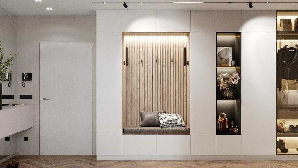 Вся меблі в квартирі виготовлена на замовлення та адаптована до особливостей приміщення. Вся побутова техніка в квартирі нова і сучасна: індукційна плита, пральна машина з функцією сушки, холодильник з сухим заморожуванням, духова шафа/мікрохвильовка, посудомийна машина, малошумна витяжка, два бойлери. Вся техніка якісна і була ретельно обрана.