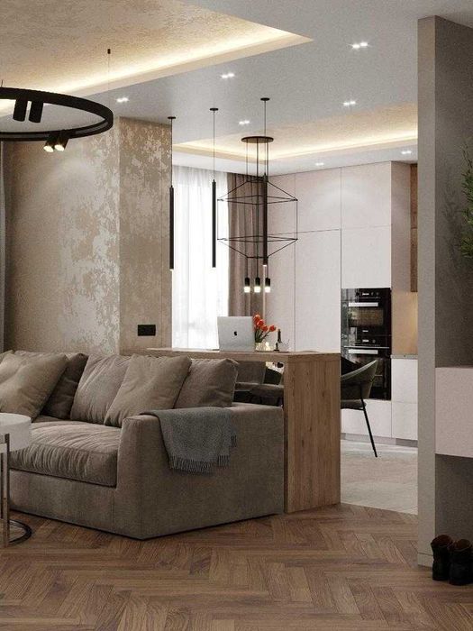 Тривалість проживання після ремонту близько року. Квартира з дизайнерським ремонтом, меблями та технікою. Ремонт високого рівня з використанням якісних матеріалів. Весь інтер'єр виконаний в сучасному стилі, поєднуючи затишок і функціональність.