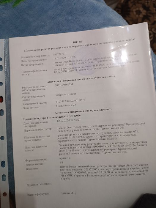 продам землю Тернопільська область Кременецький район село Старий Почаїв