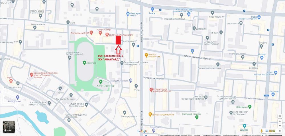 2. Стадіон "Авангард" - 1 хвилина;