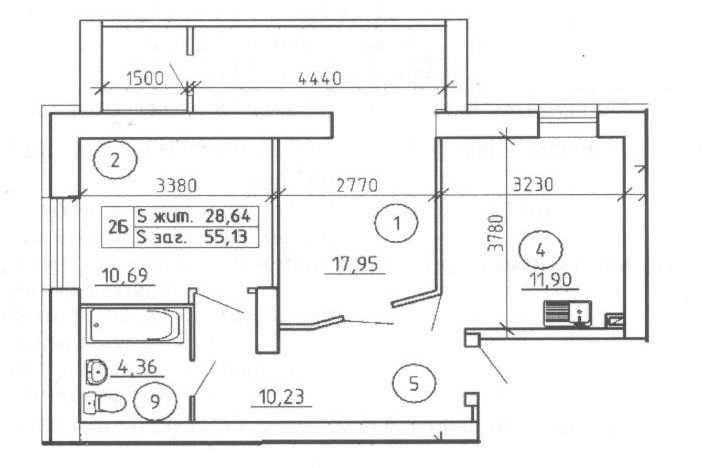 Загальна площа квартири: 55.80 кв., житлова площа: 30.80 кв.м, нежитлова площа: 25.00 кв.м.