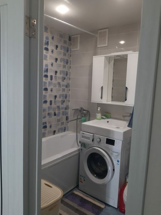 Комунарський; Продажа однокомнатной квартиры по ул.Олимпийская д.18, в Коммун.районе; Однокомнатная квартира находится на 9 этаже в 9ти этажном, панельном доме 1977г.В 2021г. был выполнен капитальный ремонт квартиры и перепланировка квартиры, увеличение комнаты за счёт коридора, квартира снаружи утеплена.Замена всех коммуникаций и проводки, замена радиаторов, установлены счётчики: газа и воды .На стенах сделана декоративная штукатурка, везде потолки-натяжные, в комнате пол-ламинат, в кухне, ванной и на двух балконах на полу керамическая плитка, балконы обшиты пластиком, везде пластиковые окна, межкомнатные и входные двери новые.Квартира торцевая, из-за наличия двух балконов, возможно изменение квартиры в двухкомнатную.Площадь комнаты-21,3м.кв., коридор-5,5м.кв., ванная-3,1м.кв., балконы-0,95 и 0,73м.кв.Дом принадлежит ОСББ.