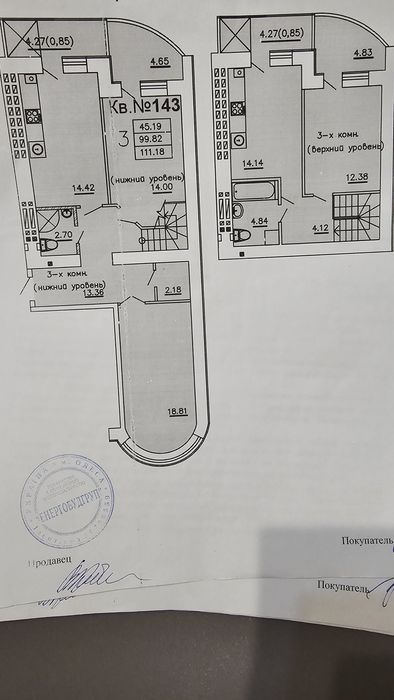 4 кімнатна квартира від власника. Будинок зданий.; 4 кімнатна 2 рівнева квартира (остані обміри 115,8 м²) в новобудові з червоного кірпіча в зданому будинку в ЖК Теплий дім. Найкраще планування, 2 балкони, 2 лоджії, 2 санвузла, кладовка, можливість переносу перестінків, на полу суха стяжка по лазеру, по кірпічу штукатурка по лазеру, в комплекті нові батареї та газовий котел. Комунікації заведені в квартиру.