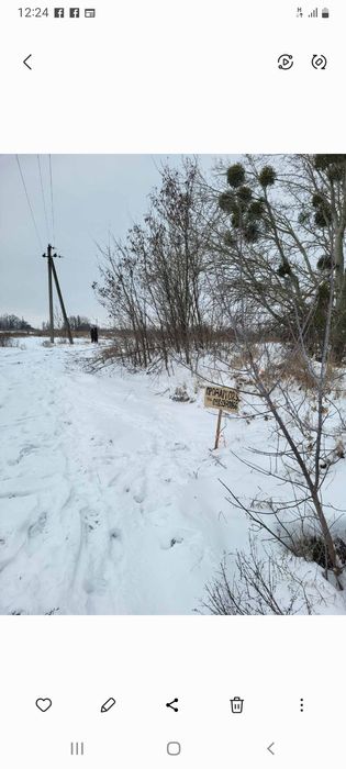 Продам землю с. Крушинка Васильківський район; Ділянка знаходиться біля великого яру, прямукутної форми, не забудована. Поруч лінія електропередач. Відстань до метро Теремки 25 км., до самого м. Василькова (фактично до самого центра) 1 км. Цільове призначення для ведення особистого селянського господарства, категорія землі сількогосподарського призначення. Ціна за сотку/ 250 $Продаж безпосередньо від власника.