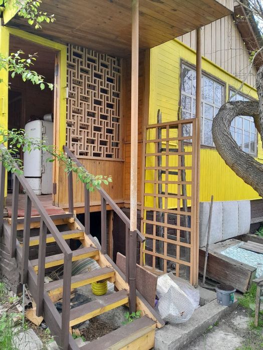 Дерев"яна дача в Ялинцi, 55,4 м2. БЕз Торгу. С. Княжичi, Броварського.; БЕЗ ТОРгу. Дачi Полiтехнiчого iнституту. Деревяна Дача 3 кiмнати з великим пiдвалом. Стiни iз дошки 50 мм, як в ж\д вагонах. Нова електропровiдка проведена по всьому будинку та у пiдвалi. Провiд у гофрi, прокладений ззовнi по стiнi як для деревянних будинкiв. Великий зл. щиток, все розведено по автоматах. Новi розетки i вимикачi, до кожного проведений свiй провiд. Новий ганок, сходи, перила. Скважина у дворi з насосною станцiэю та технiчним приямком. Вiн великий, вимощений цеглою з драбиною вниз. Пiдвал iз цупкоi, радянськоi цегли, вона не сипеться. Газ плита з балоном, холодильник, мiкрохвильовка, пральна машина. В кiнцi дiлянки цегляний сарай з туалетом. Деревяний, лiтнiй душ. Сад. 6,4 соток. Документи на будинок та землю, право власностi угода купiвлi продажу. Земля приватизована з кадастровим номером. Призначення землi садове. Обмiн, НI. Фото сховища немаэ. Все оформлення сплачуэ покупець. С. Княжичи, Броварського р-ну.