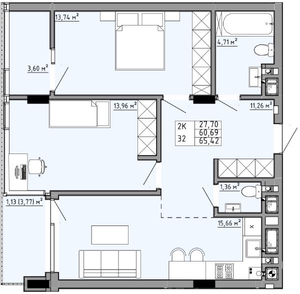 15.66 м2