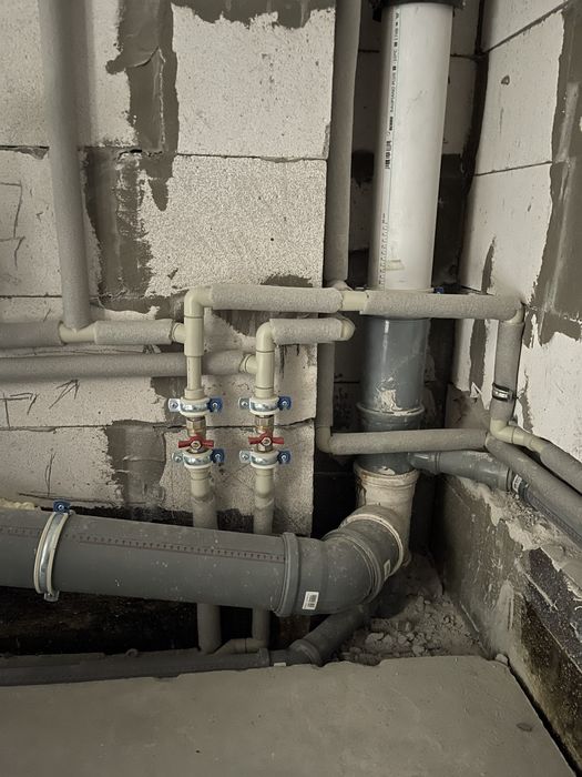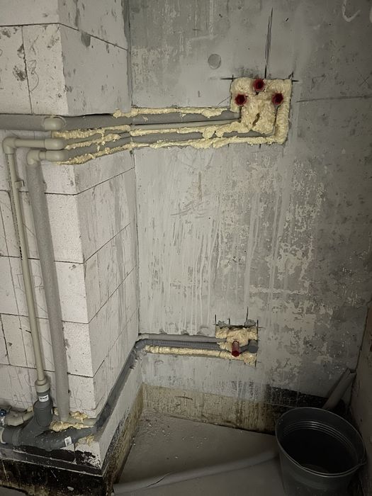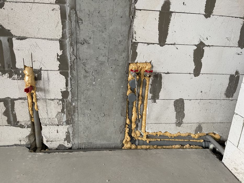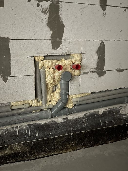 Сделана розводка сантехники и водоснабжения санузла и кухни.