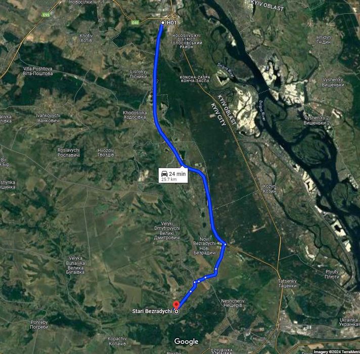 25 км від Києва.