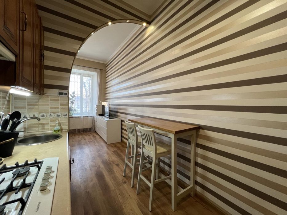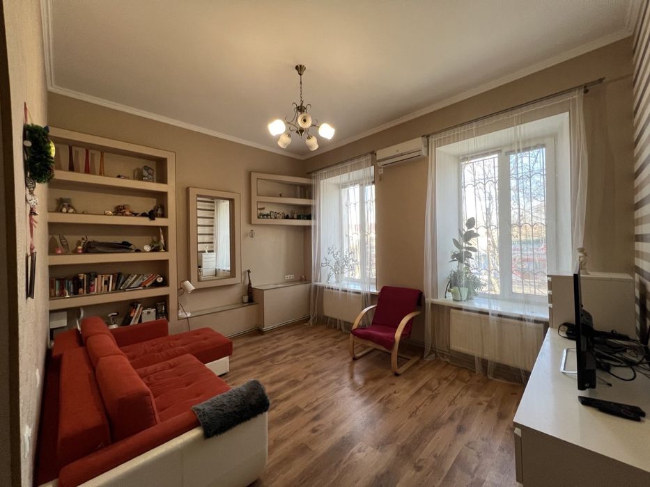 Центральний; Квартира-студія однокімнатна; Продається однокімнатна квартира-студія у двоповерховому будинку особнячного типу біля костелу по вул. Декабристів, загальною площею 30,2 кв.м. (кімната 16,6 кв.м., санвузол 3,1 кв.м., коридор 3,7 кв.м., кухня 6,8 кв.м), висота приміщень 3,5 м. Квартира світла, тепла та затишна. Опалення індивідуальне (двоконтурний котел). Є підвальне приміщення. Встановлено кондиціонер. Частково залишаються меблі. Капітальний ремонт, решітки на вікнах, м\п вікна.